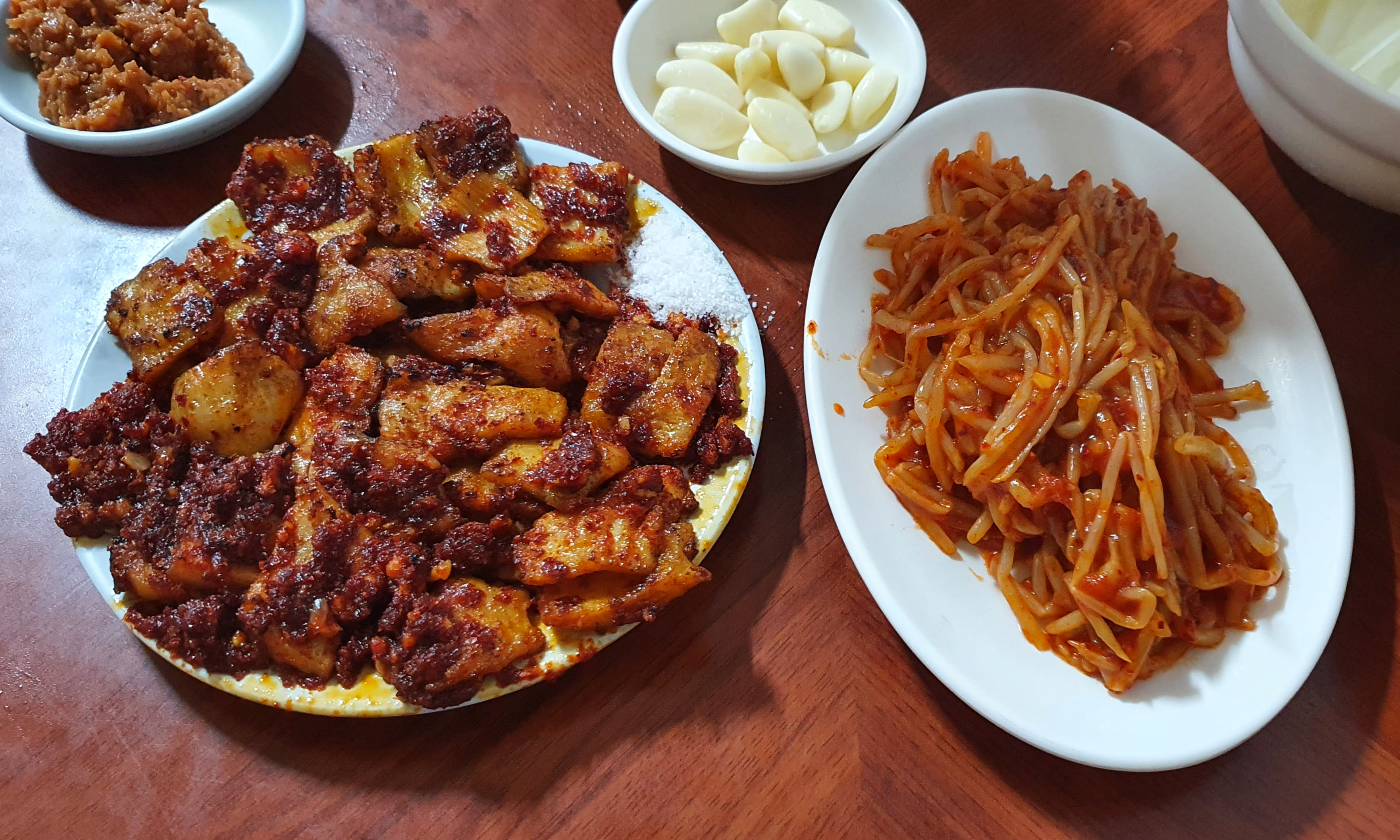 오드레기는 대창보다 맛은 나았는데, 턱관절 안좋은 사람들은 저 하얀 고기를 못씹을수도...?